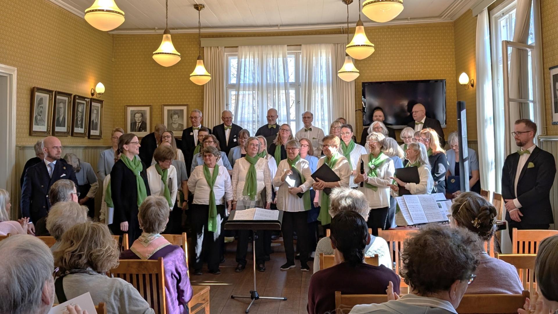 Esbo Sångkör och Gillekören samlades den 19 april "hemma hos" ESK i idylliska Lagstads hembygdsgård till en solig vårkonsert med mjöd och mingel med en glad publik.